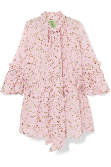 Yvonne S Angelica Ruffled Floral Print Linen Tunic In Baby Pink Modesens